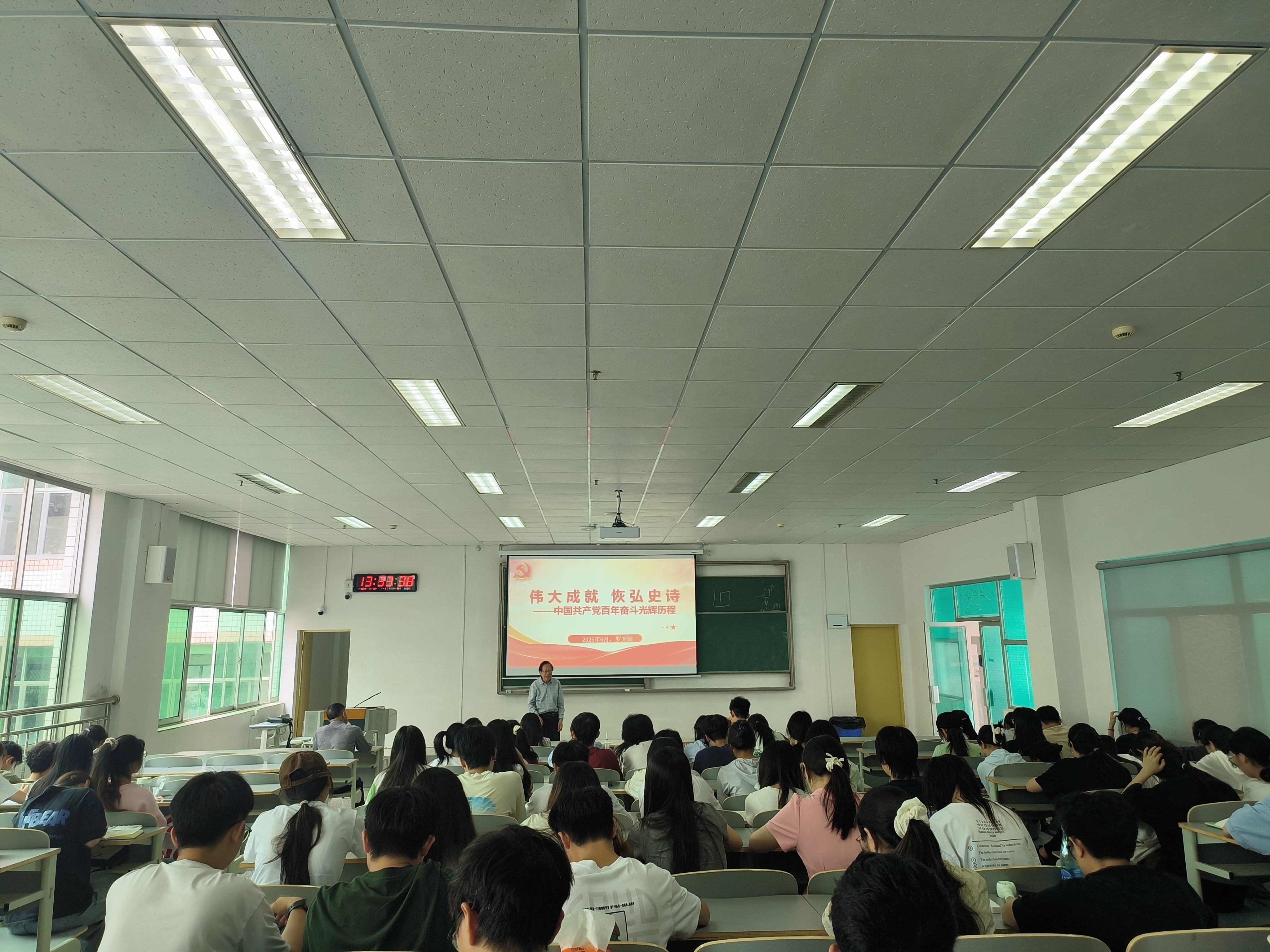 在讲座中,罗开阳教授以“新民主主义革命”“社会主义建设”“改革开放”“中国特色社会主义进入新时代”等4个时期为线,结合具体的历史事件,为大家激情讲述了波澜壮阔的百年党史。讲座内容十分丰富,通过一个个红色故事串联党的历史,讲座感染力强,教育意义凸显。