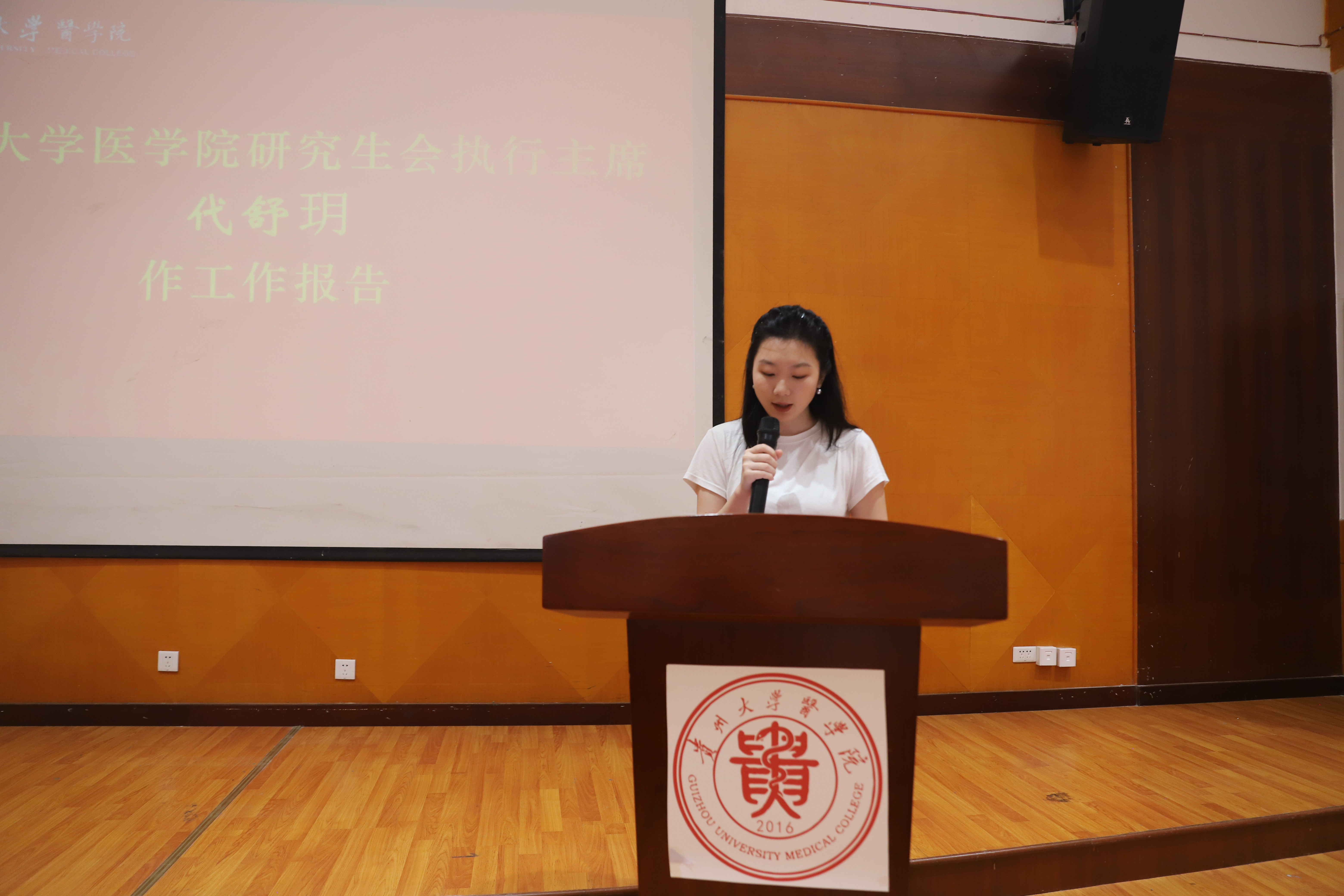 医学院第七届学生会主席张金戈、第八届研究生会副主席代舒玥分别作工作报告。全面总结了过去一学年学生会、研究生会在思想引领、校园文化建设、权益服务等方面的工作成果与经验,深入分析工作中存在的不足,并对未来工作提出展望。