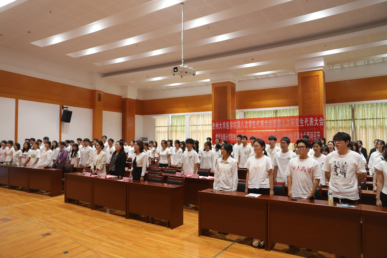 大会在庄严的国歌声中正式拉开帷幕。校学生会代表戴琬芯宣读了学校《关于同意召开医学院第八次学生代表大会暨第九次研究生代表大会的批复》。