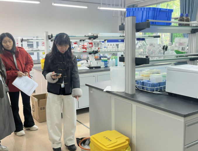 检查小组严格遵循《高等学校实验室安全检查项目表(2025年)》的规定,结合秋季实验教学的独特需求,重点对以下方面进行全面检查:实验室日常管理台账记录是否规范且完整;危险化学品存储与使用是否符合相关法规;特种设备运行及维护记录是否详尽齐全;水电及消防设施是否完好且有效;实验废弃物分类贮存与处置流程是否规范合规;实验室环境卫生及人员操作是否满足安全标准。